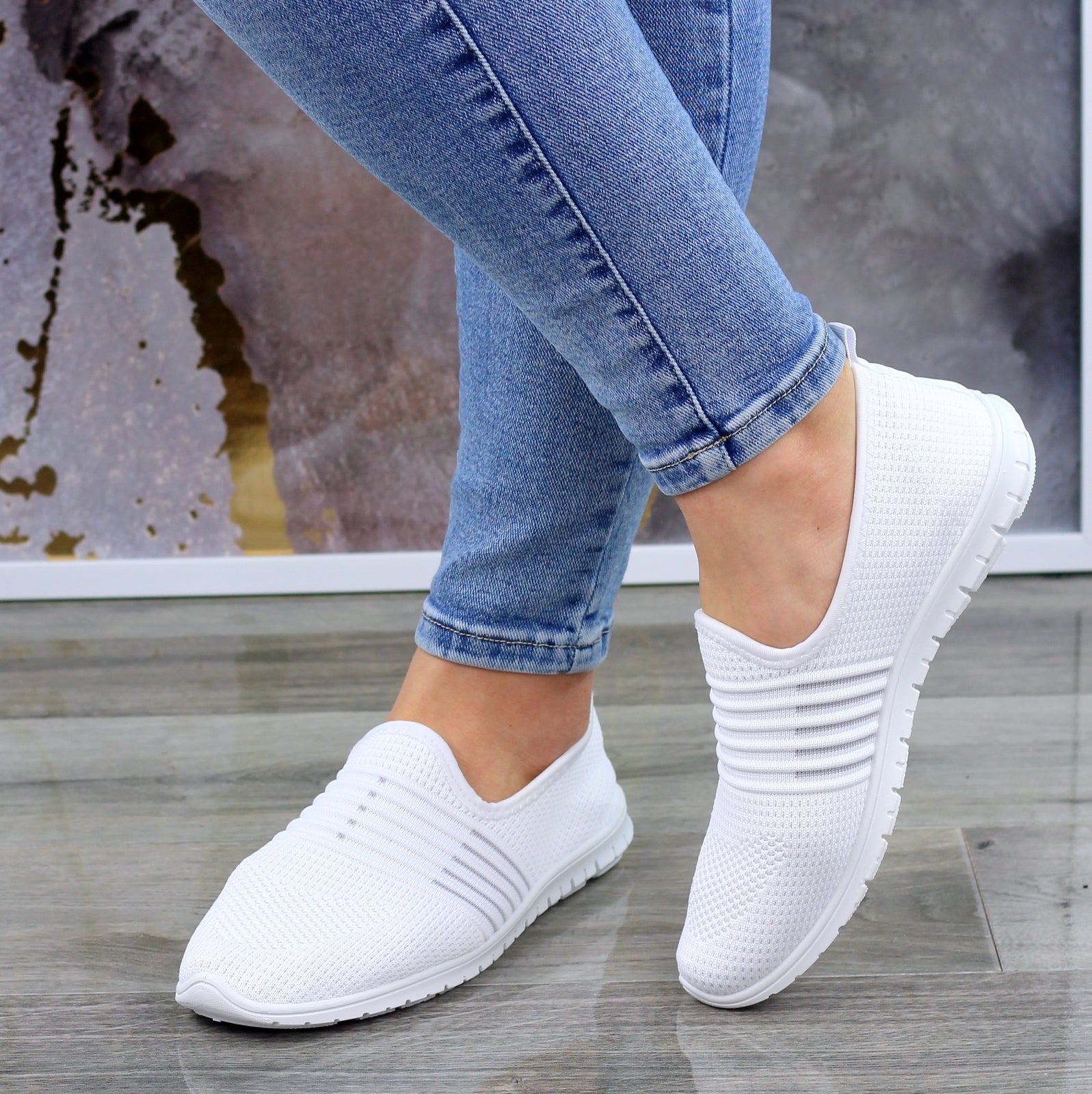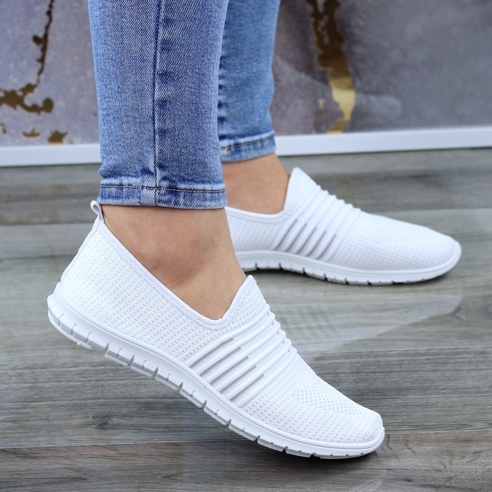 Miękkie, wygodne białe tenisówki elastyczne trampki damskie