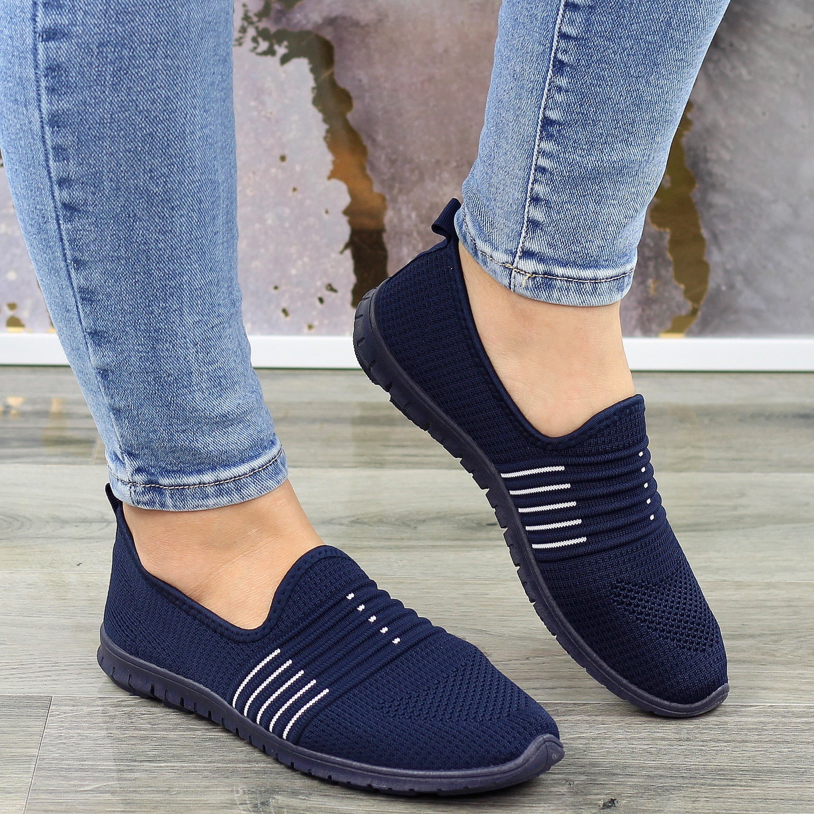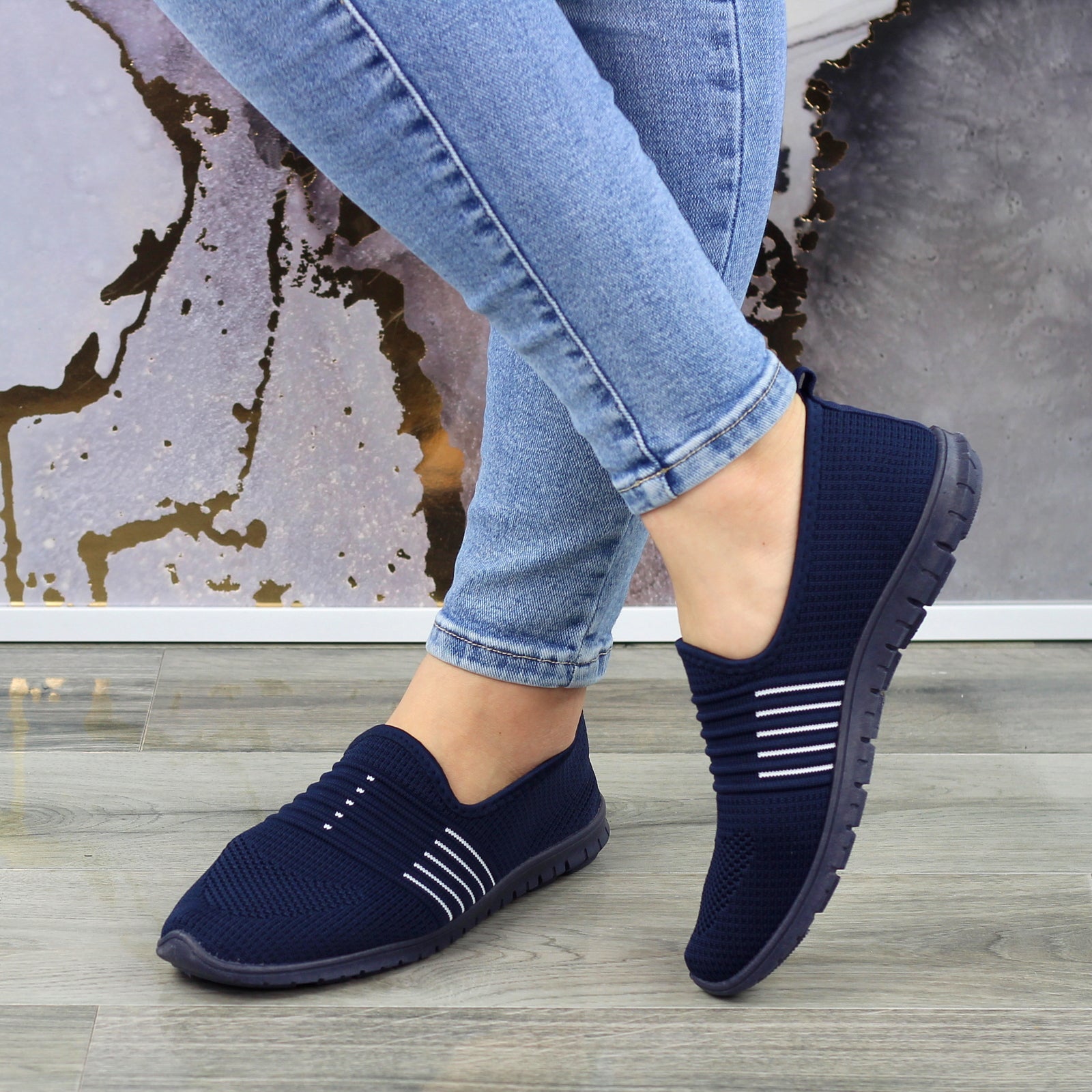 Miękkie, wygodne granatowe tenisówki elastyczne trampki damskie