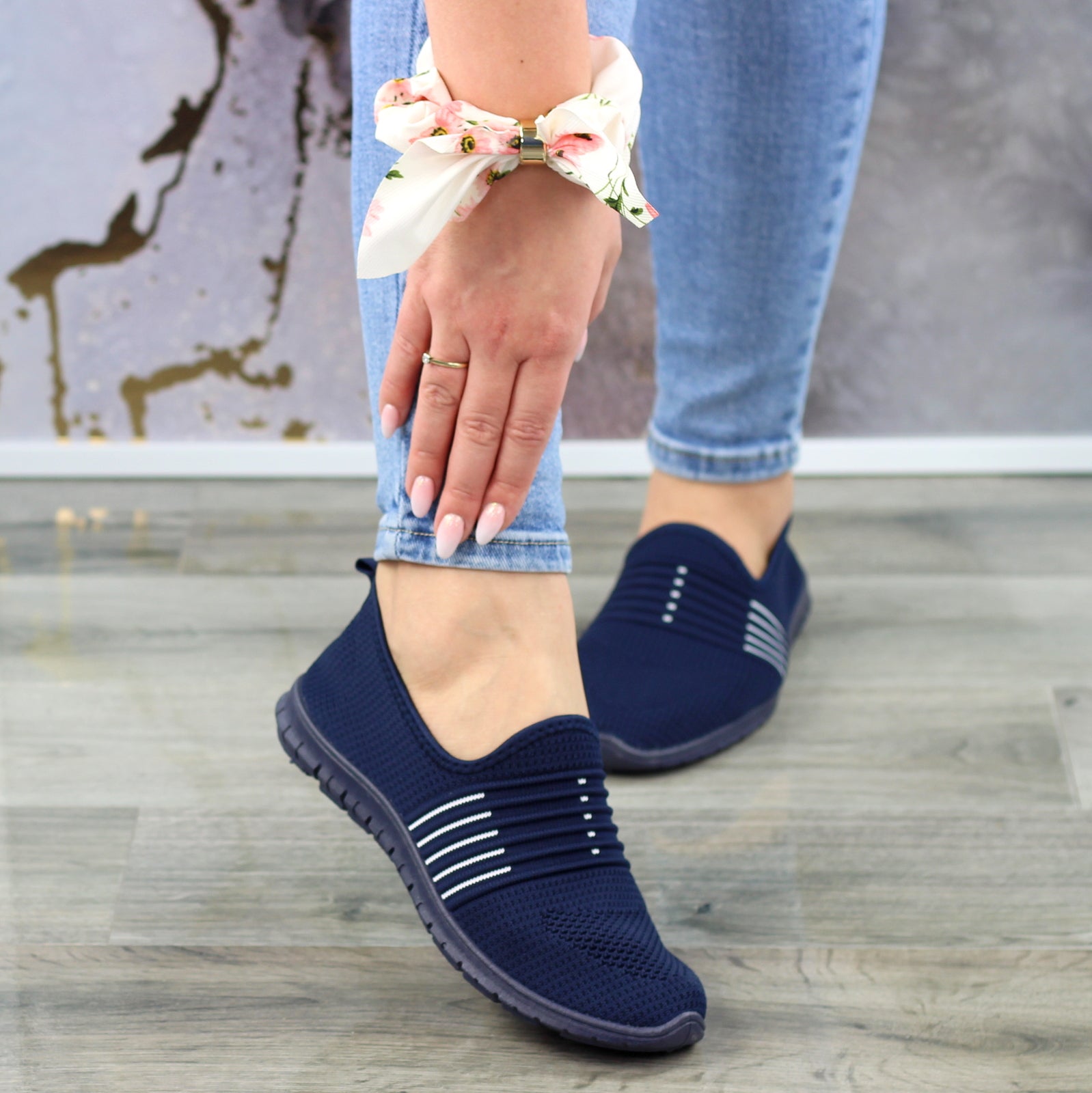 Granatowe trampki mięciutkie slim na wygodnej podeszwie wykonane z mięciutkiej elastycznej tkaniny.