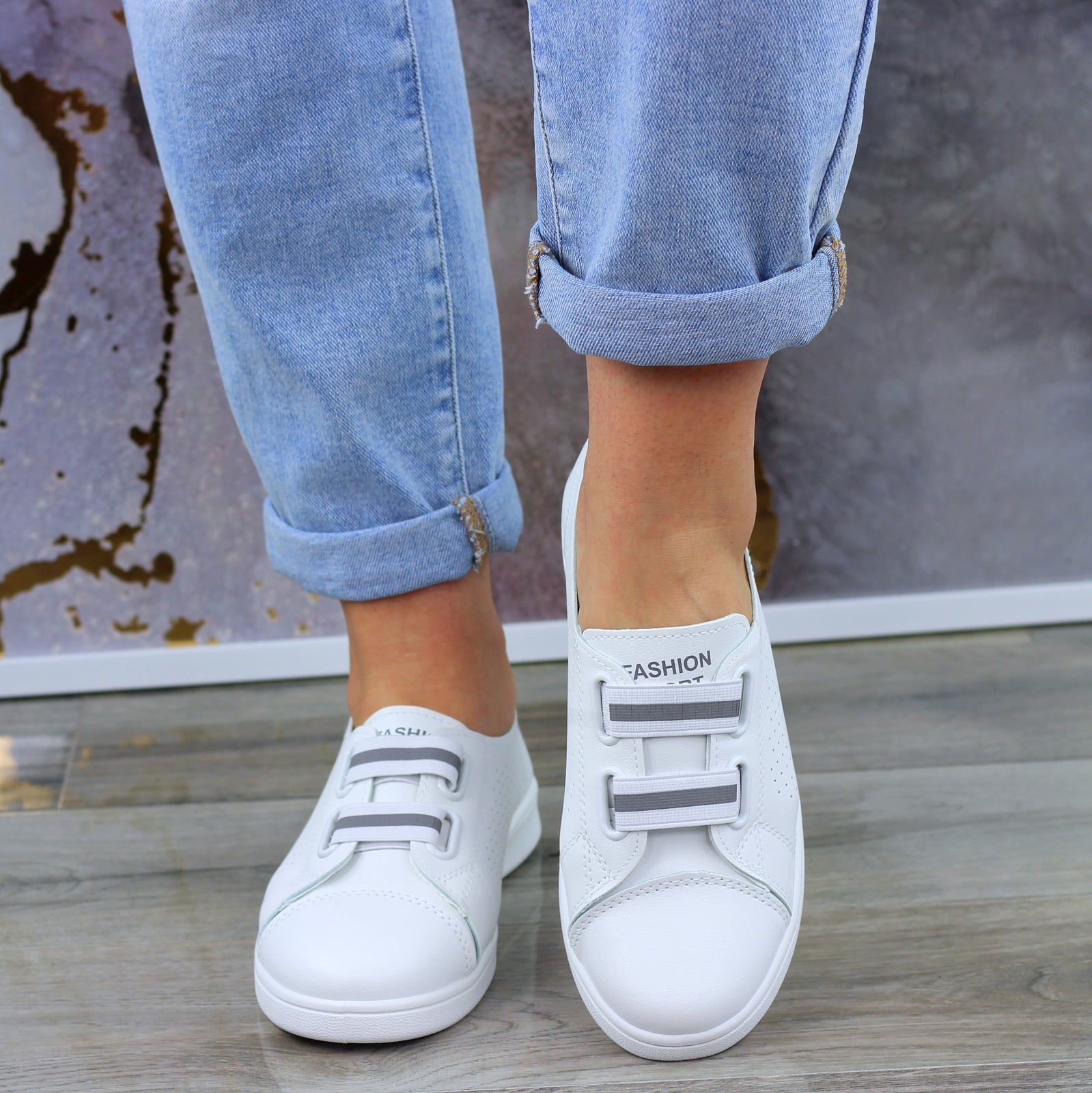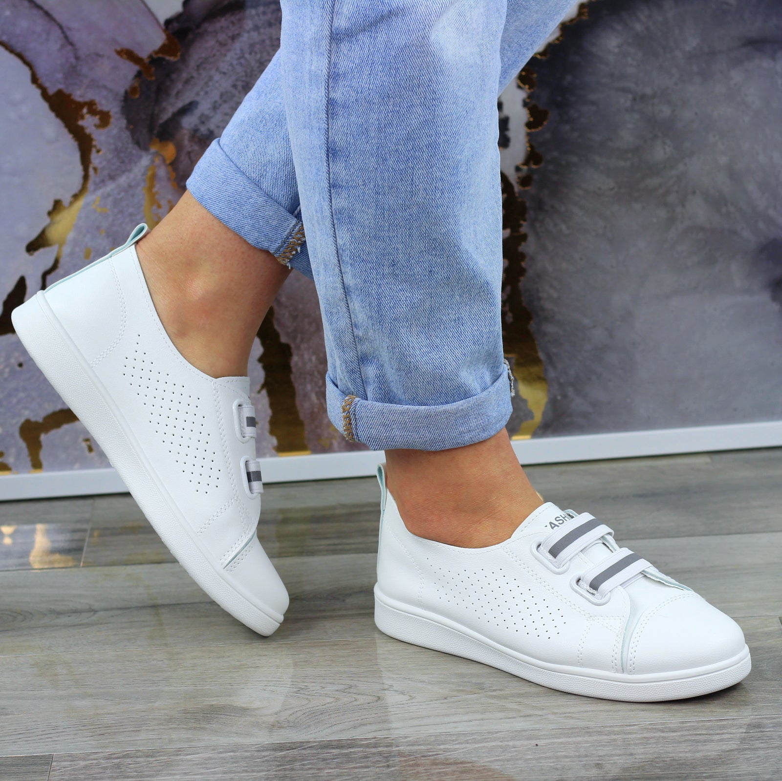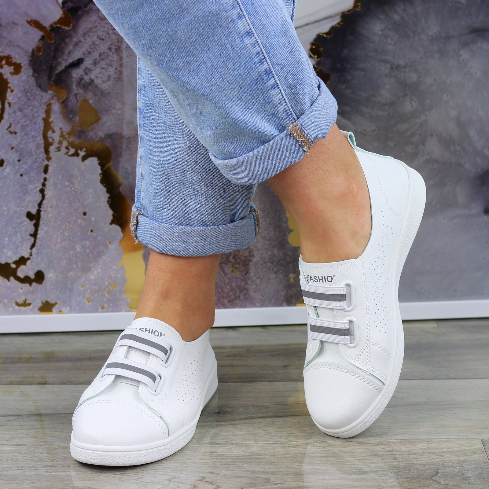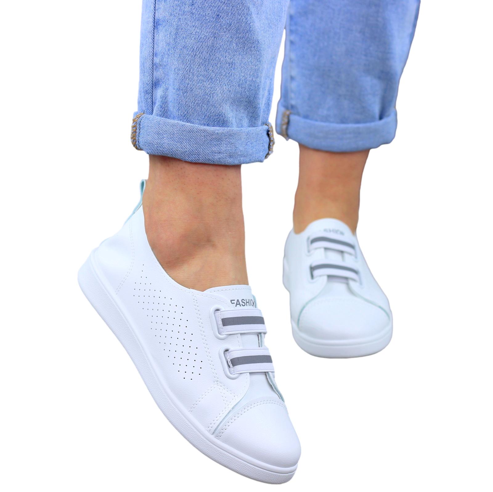 MODNE BIAŁE AŻUROWE SKÓRZANE TENISÓWKI TRAMPKI DAMSKIE WSUWANE FASHIONS