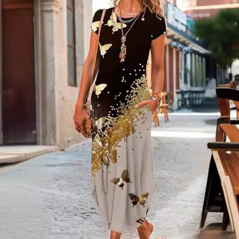 ✨Długie sukienki damskie z nadrukiem w postaci koszulek