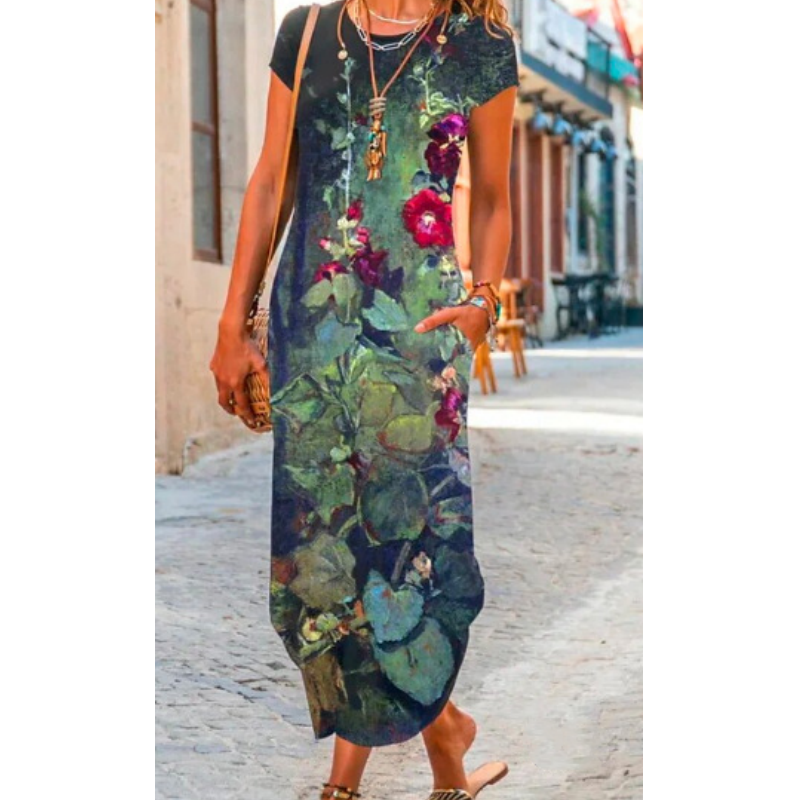 Uniwersalna i łatwa do łączenia – niezależnie od tego, czy wybierasz się na wieczorne wyjście w sandałach, czy zestawiasz je ze sportowymi butami, ta długa sukienka sprawdzi się doskonale na każdą okazję, od brunchu po wieczorny spacer.