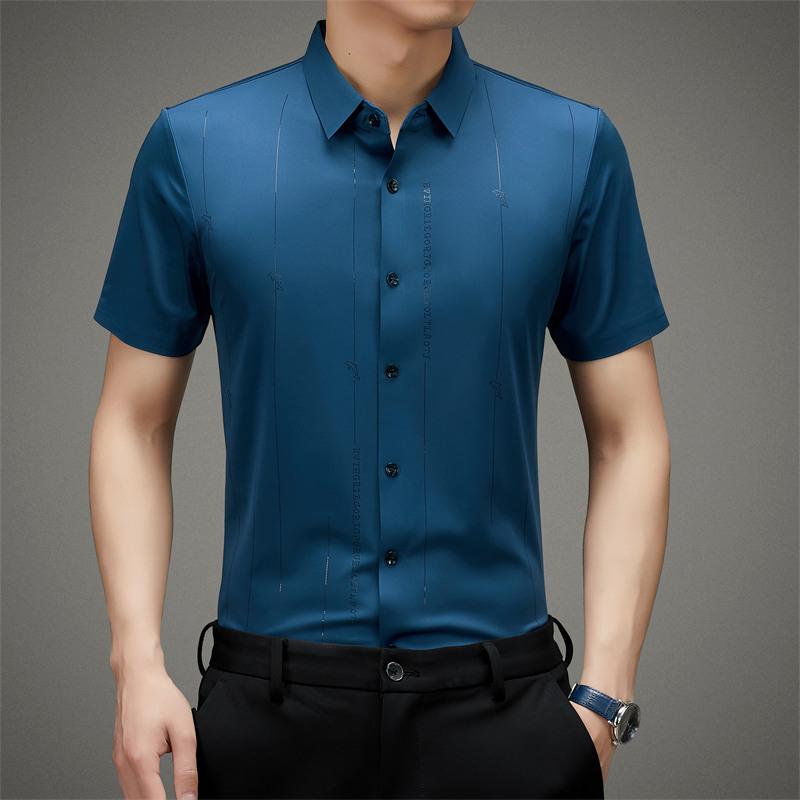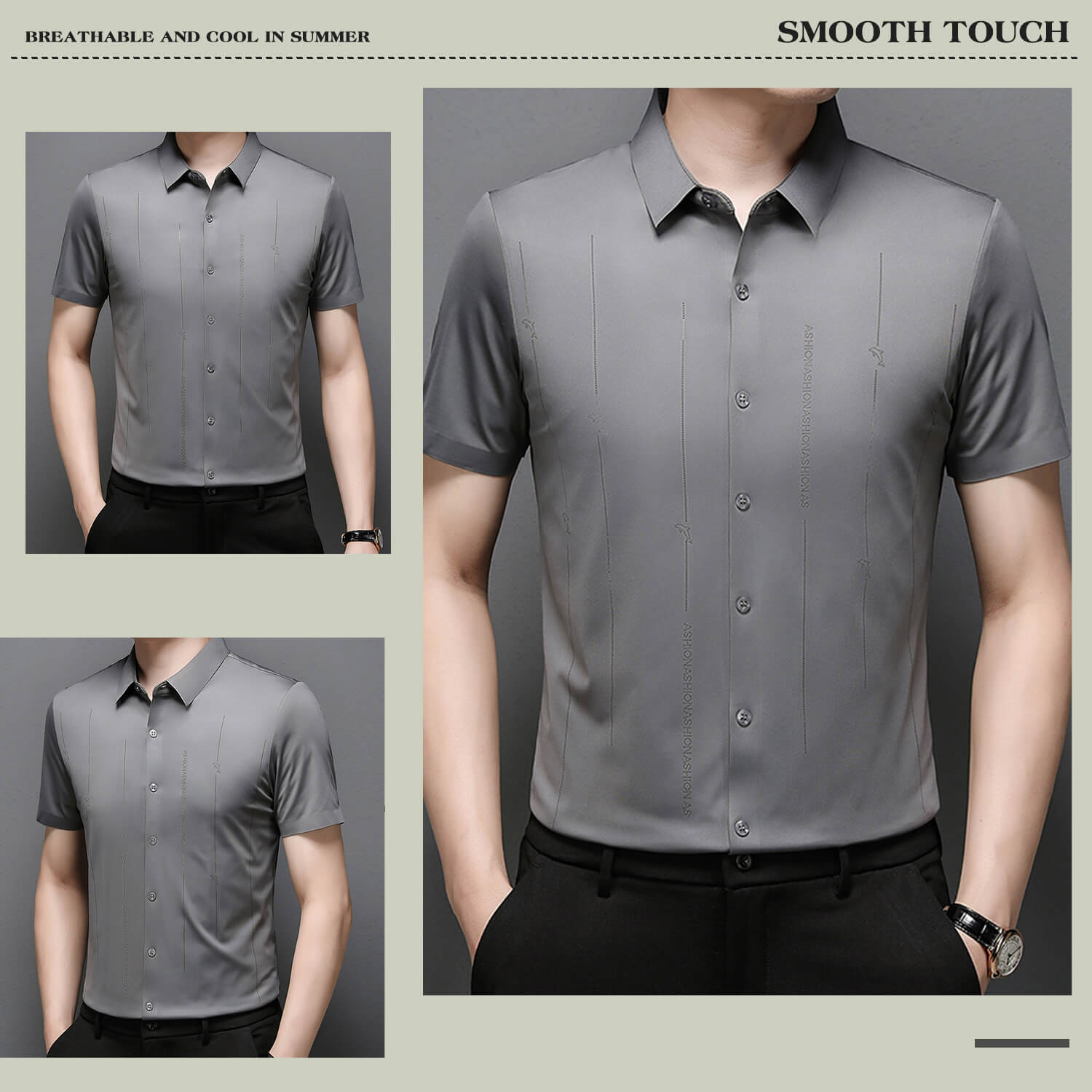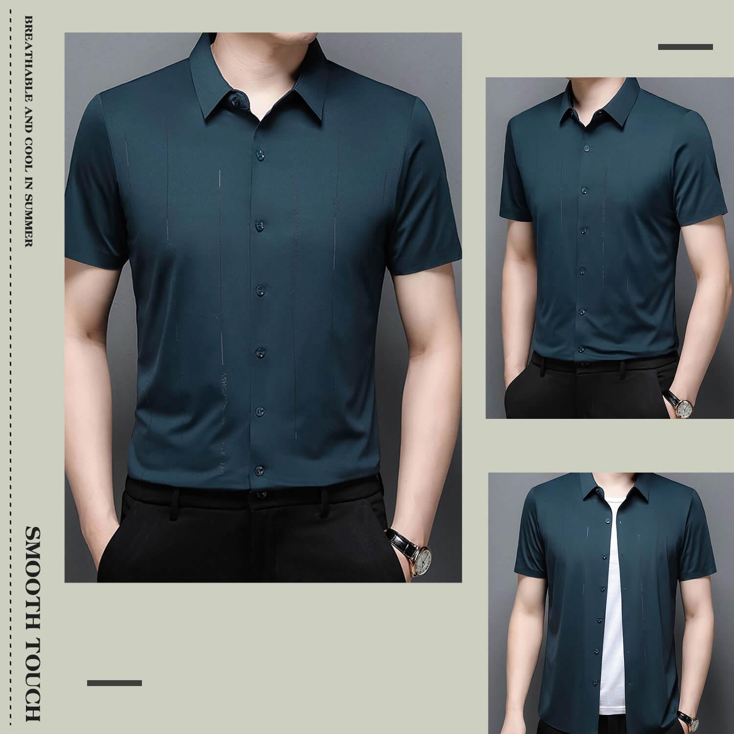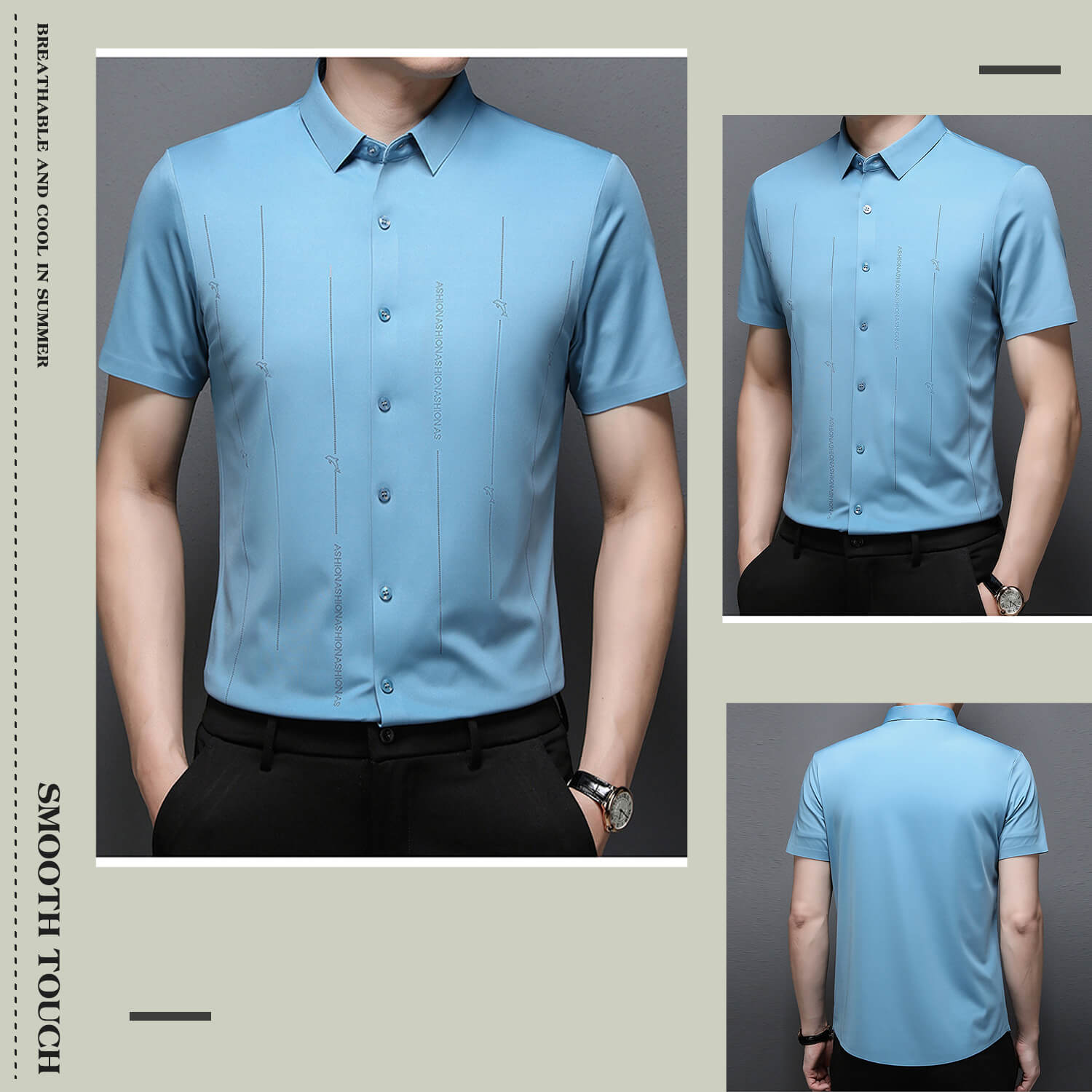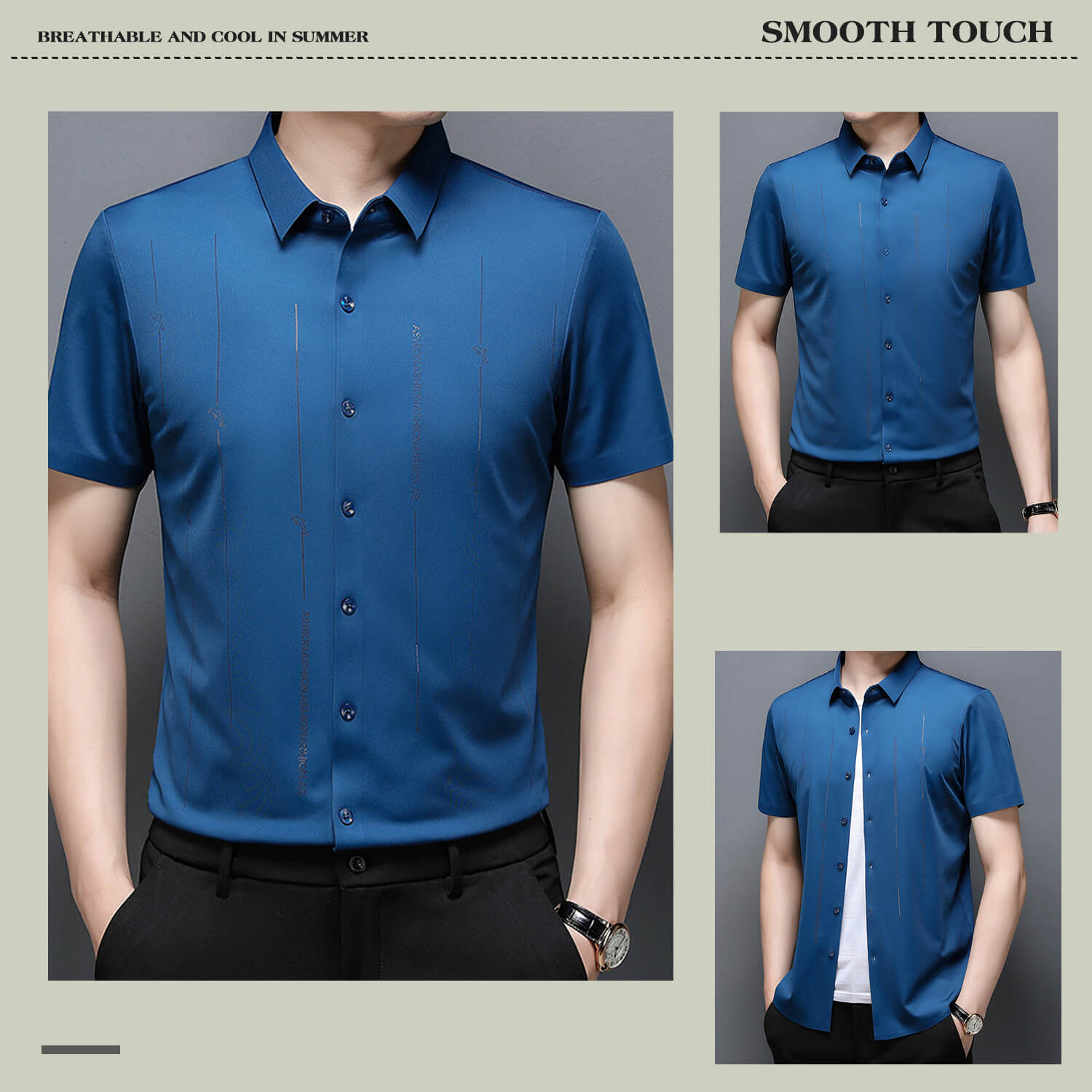 ❄️Męska koszula z jedwabiu lodowego o wysokiej elastyczności i odporności na zagniecenia