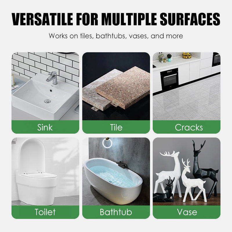 NAPRAWIA WSZYSTKO – Pęknięte płytki? Uszkodzone wanny? Odpadające fragmenty wazonów? Produkt nadaje się do ceramiki, porcelany i innych powierzchni, oferując uniwersalne rozwiązanie do domowych napraw. Nie wyrzucaj uszkodzonych przedmiotów – po prostu je napraw i oszczędź pieniądze.