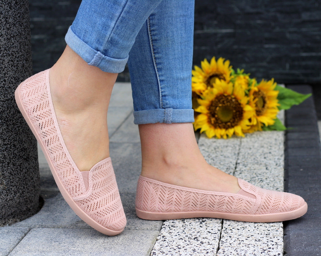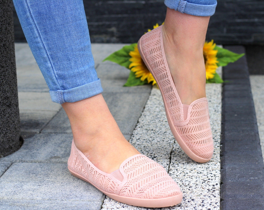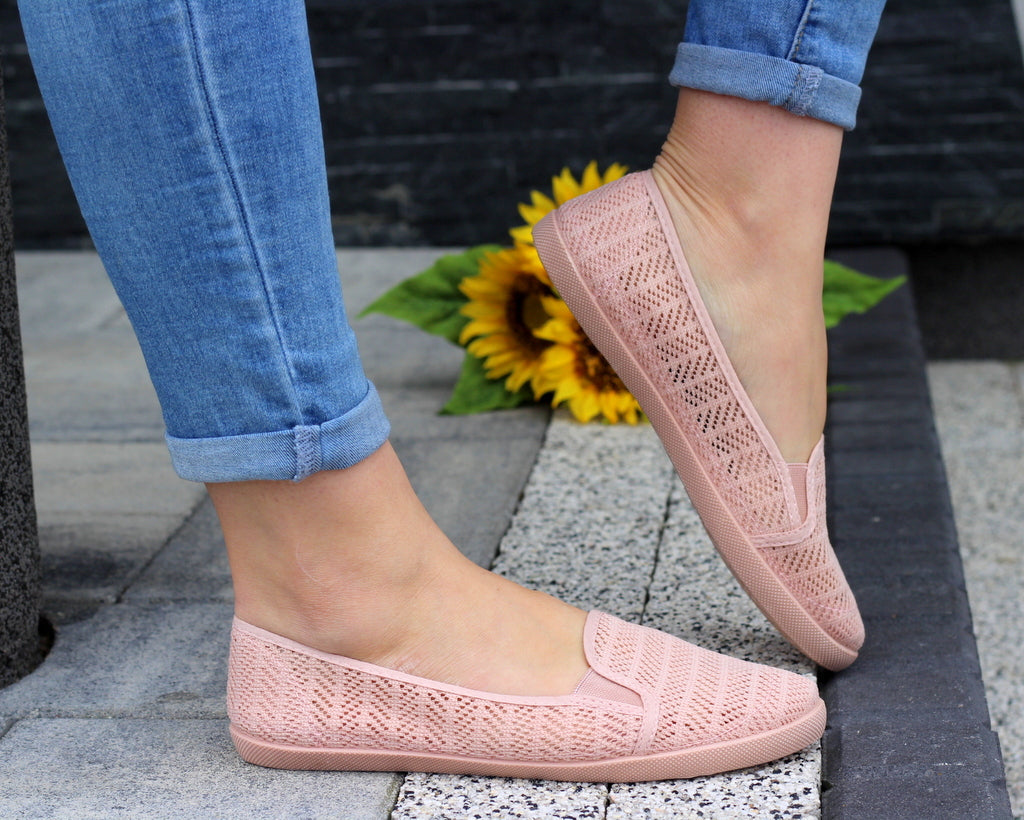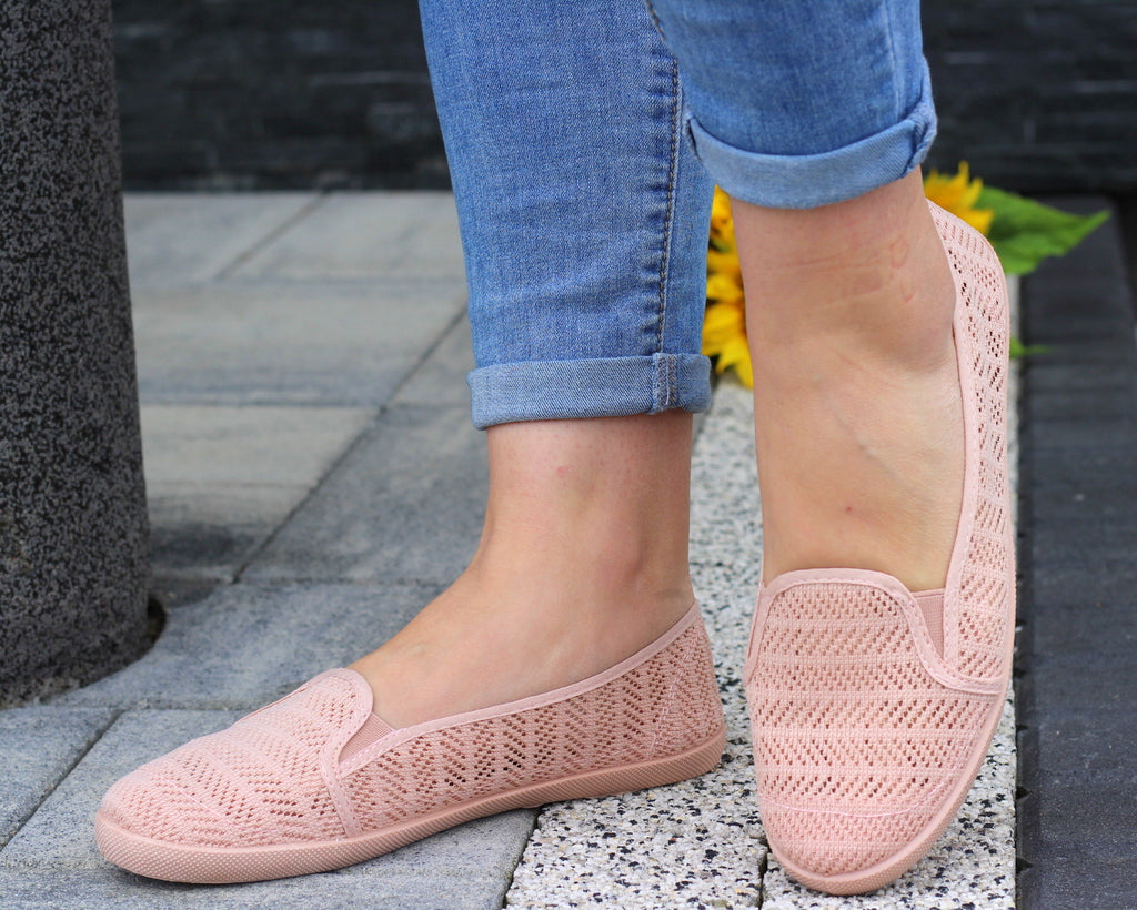 PUDROWY RÓŻ TENISÓWKI KORONKOWE NA LATO