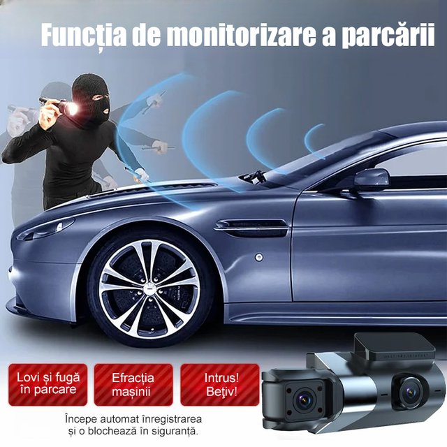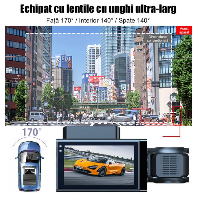 Recorder auto HD WiFi cu trei înregistrări