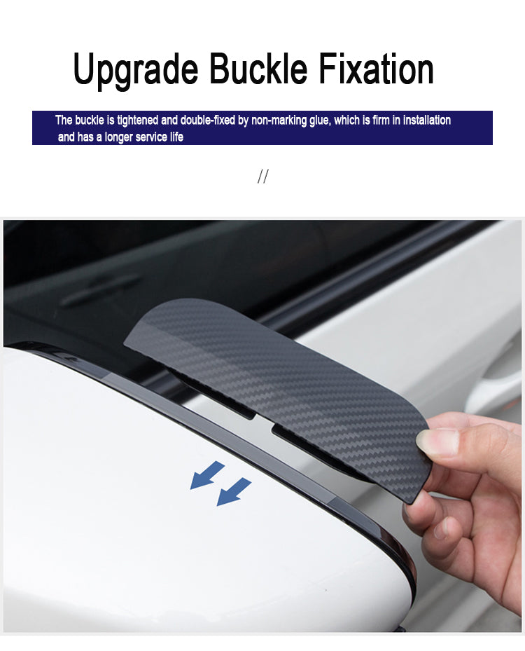 2 bucăți de foi impermeabile cu catarame noi, cu adeziv special pentru mașini auxiliare, sigure, simple și ferme. Produsul este fabricat din material din fibră de carbon, ecologic. Negrul poate fi asortat cu oglinzi de orice culoare. După instalare, nu va afecta plierea oglinzii retrovizoare și nu va bloca linia de vizibilitate.