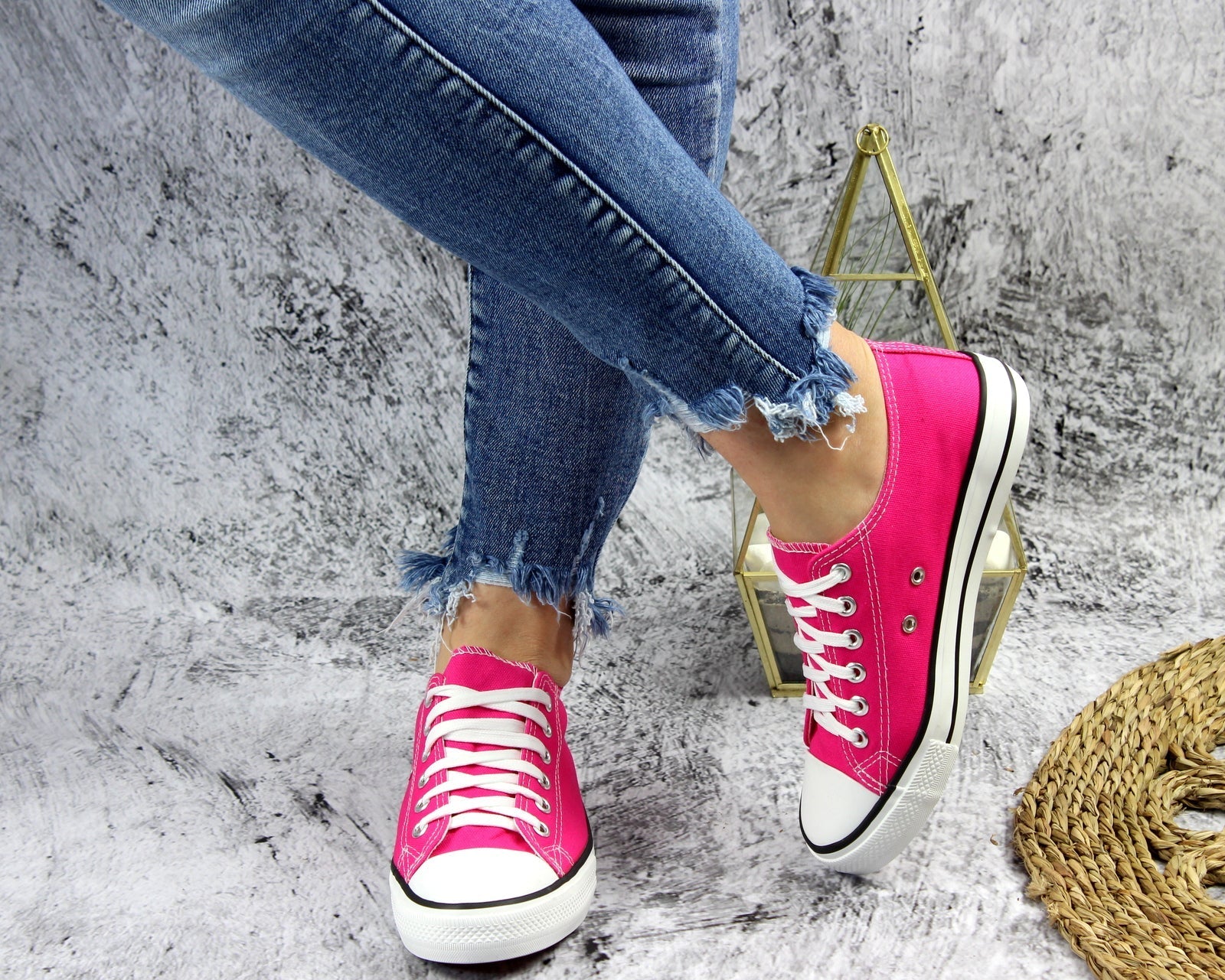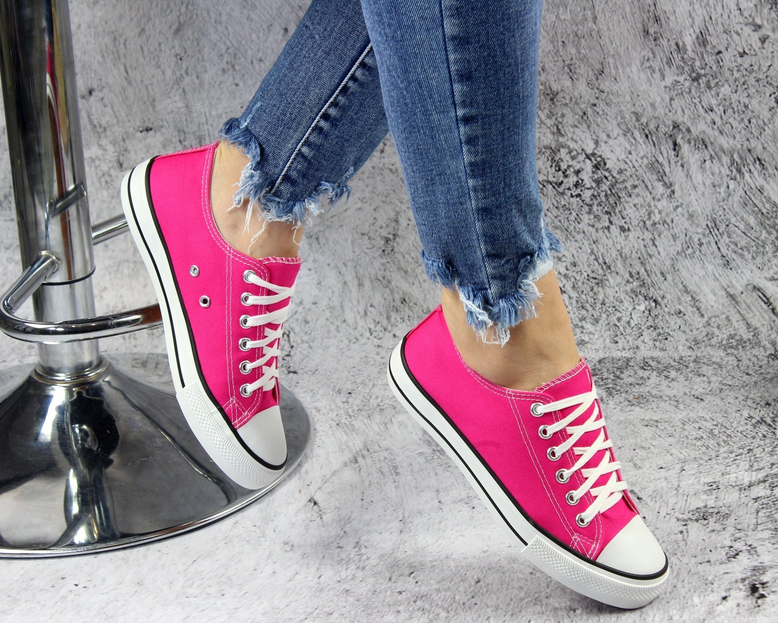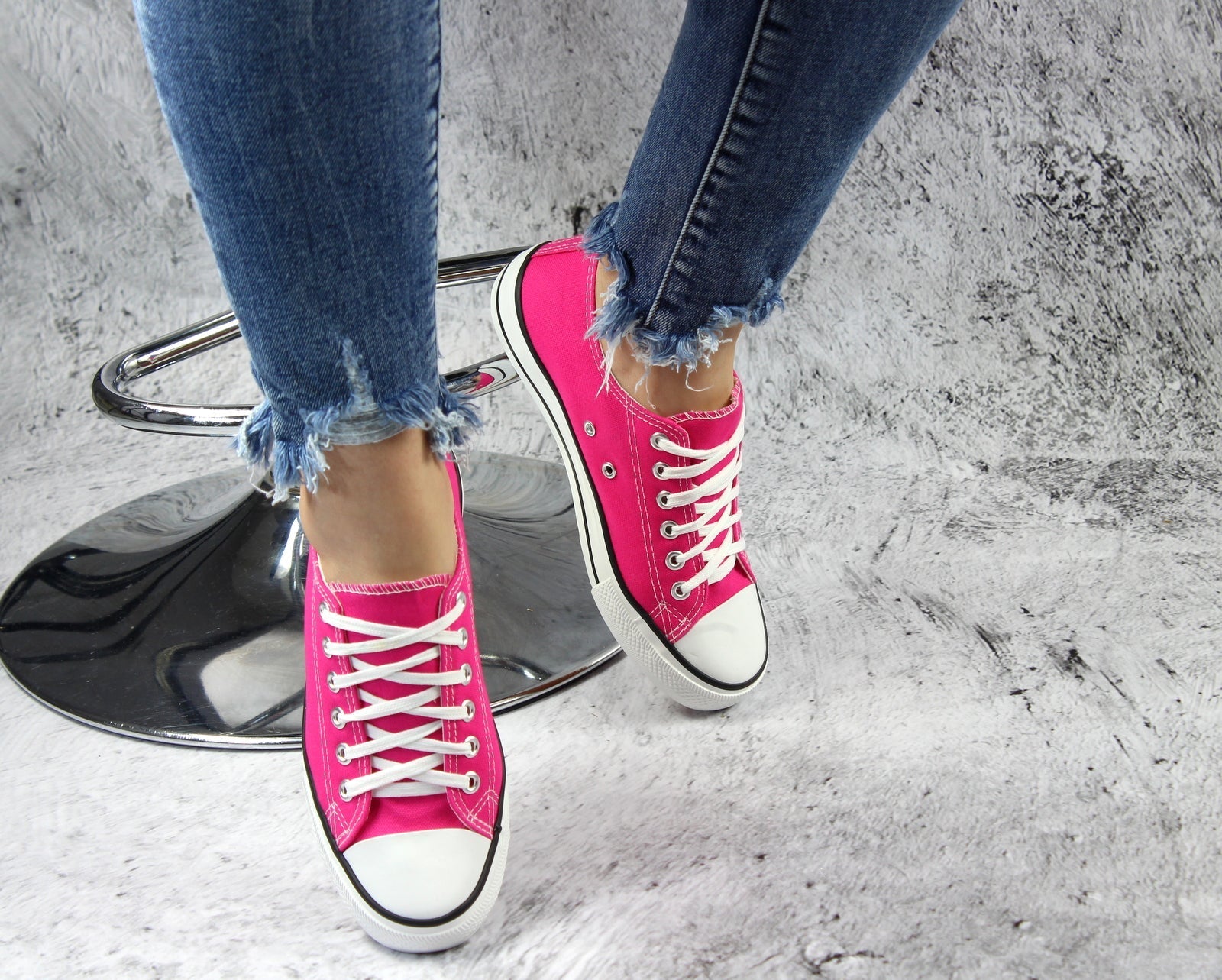 Różowe sznurowane gładkie trampki damskie