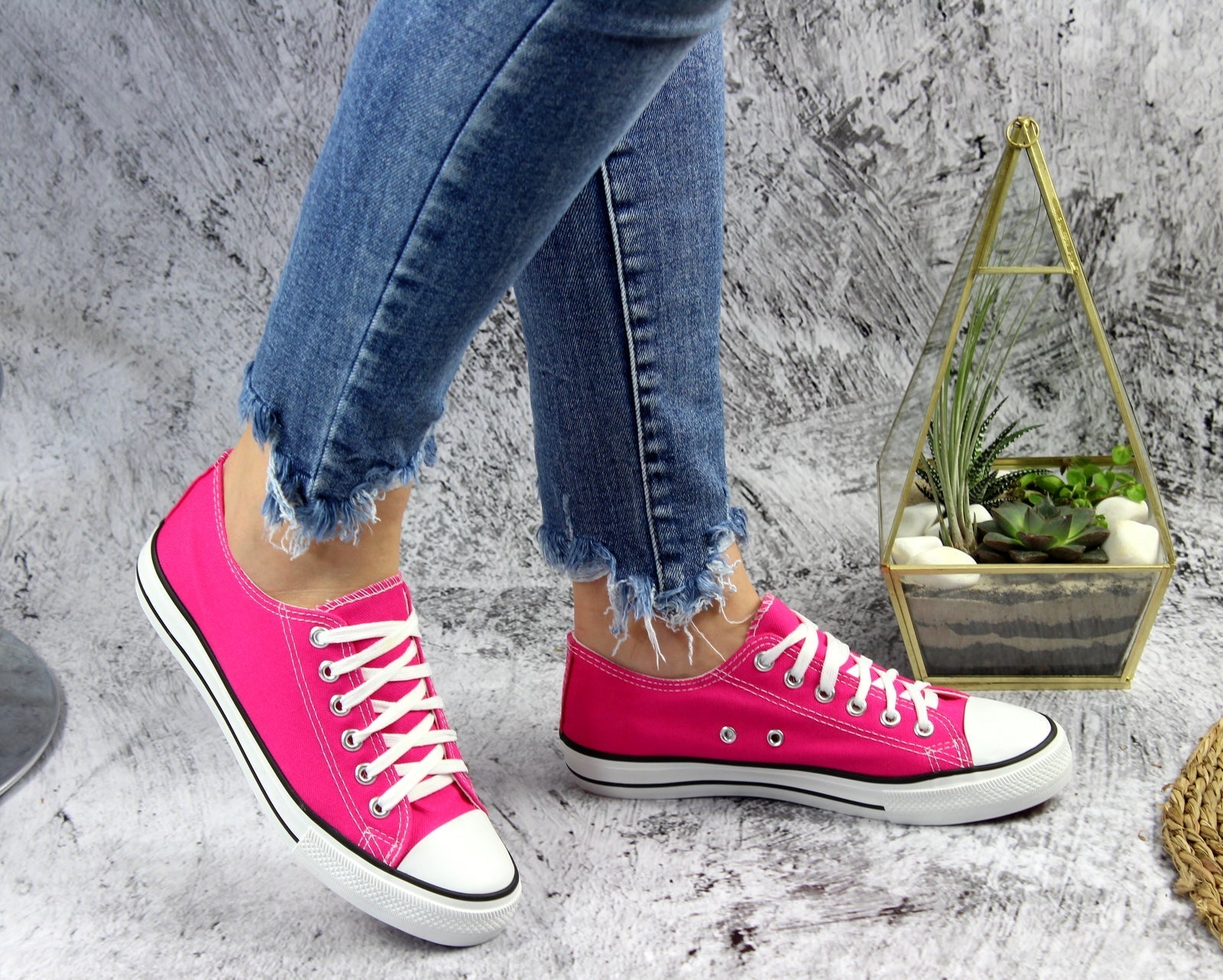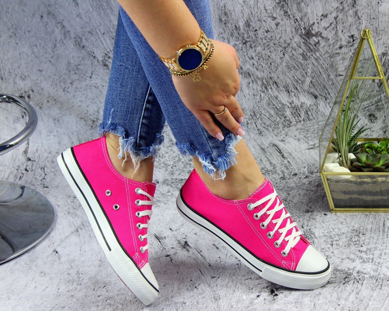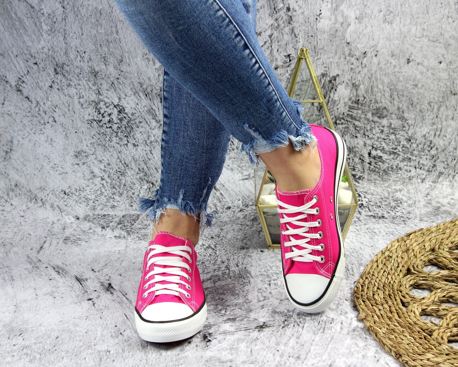 Różowe sznurowane gładkie trampki damskie