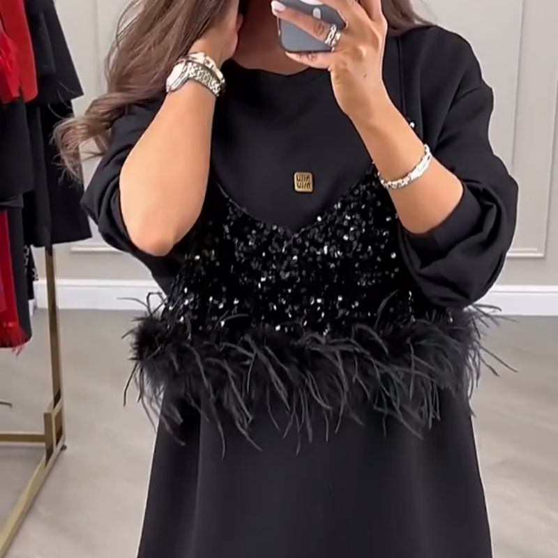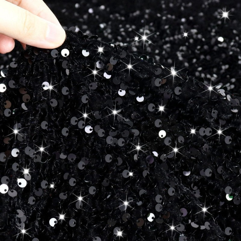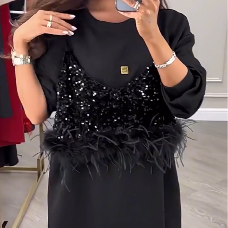 Modna damska dwuczęściowa sukienka z czarnymi cekinami