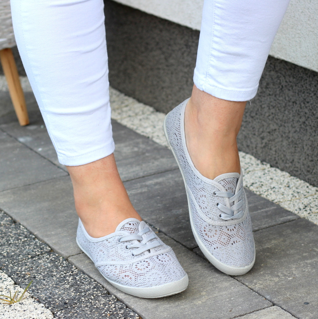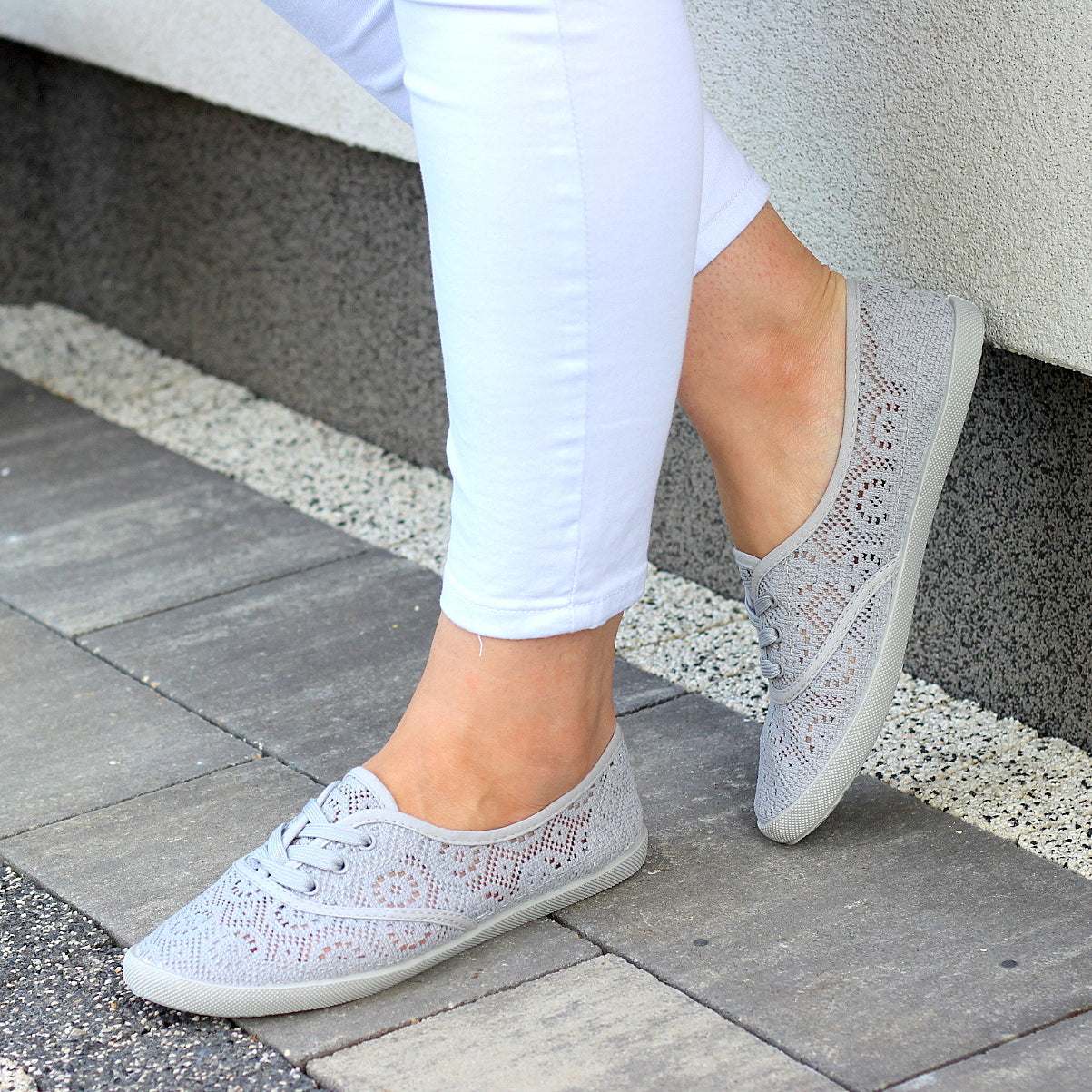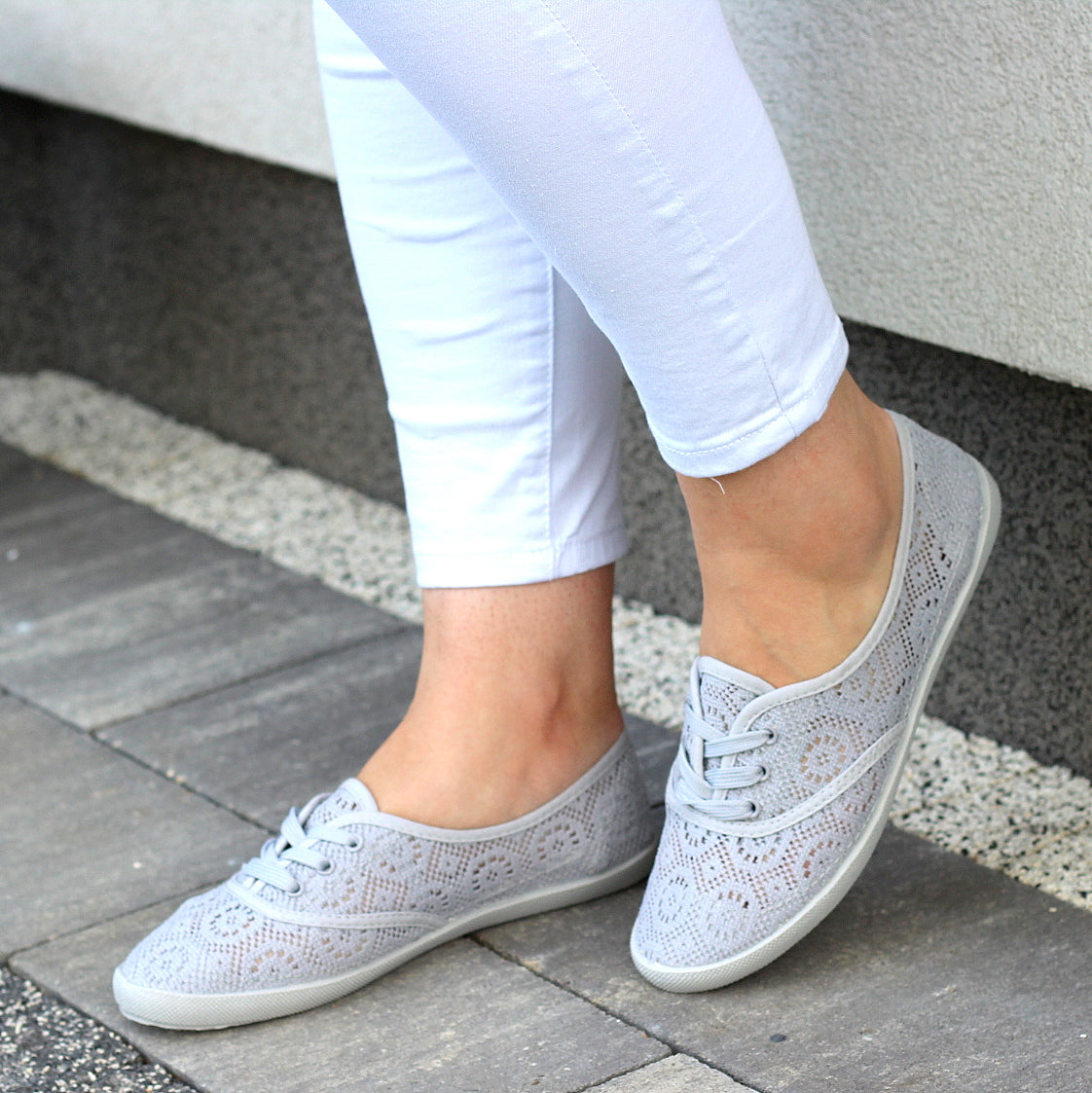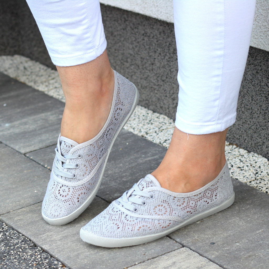 Szare  mięciutkie tenisówki damskie wykonane z przewiewnej koronki