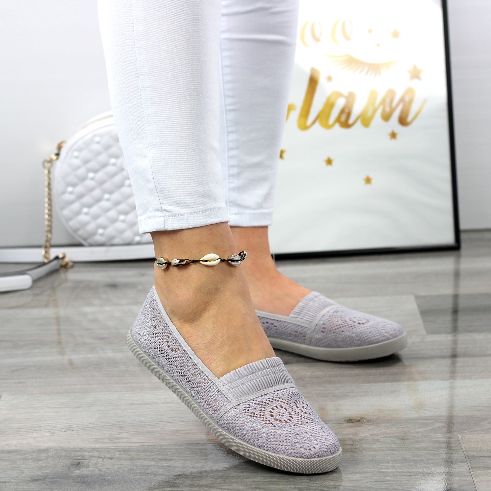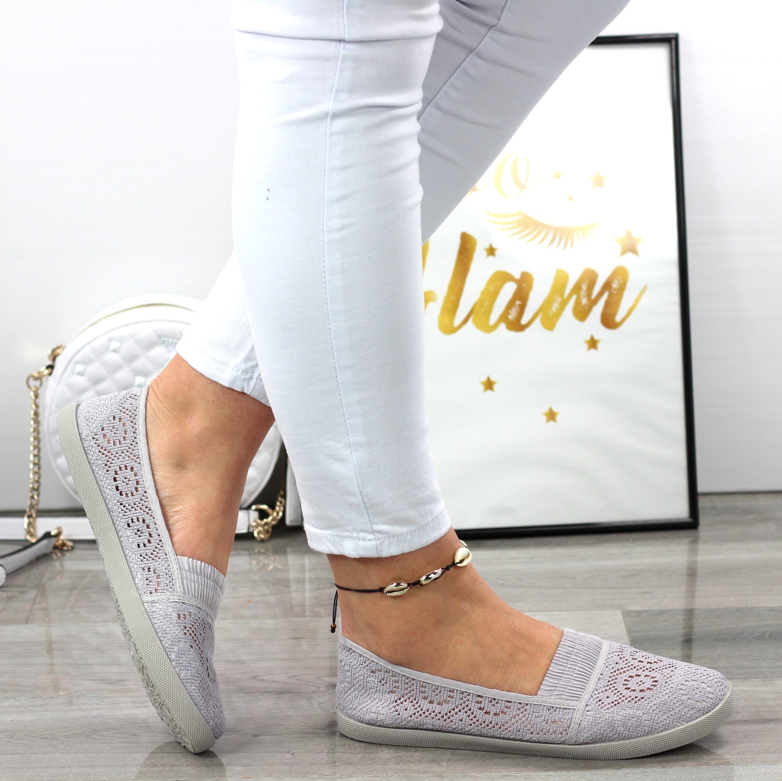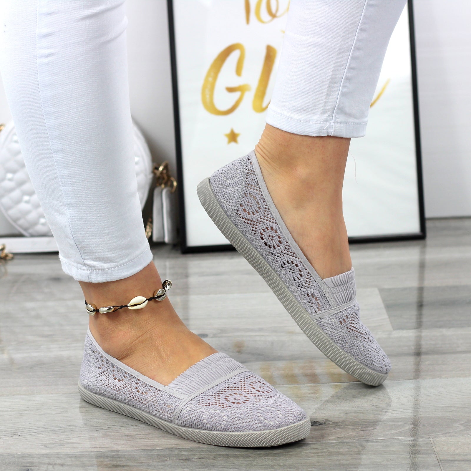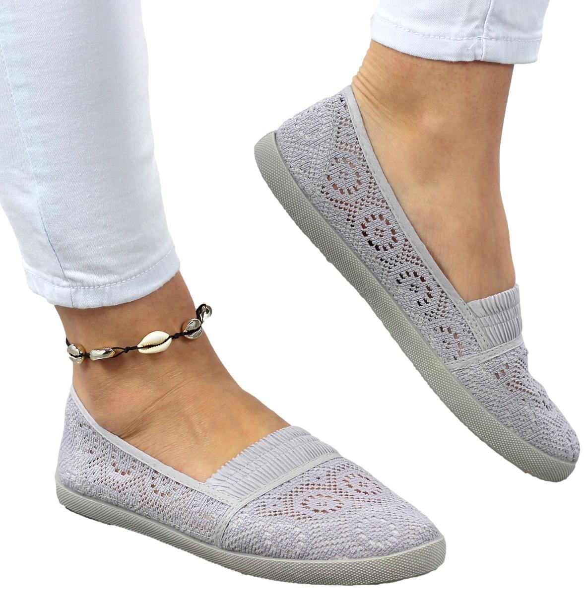 Szare Wygodne Koronkowe Trampki Tenisówki Gumka