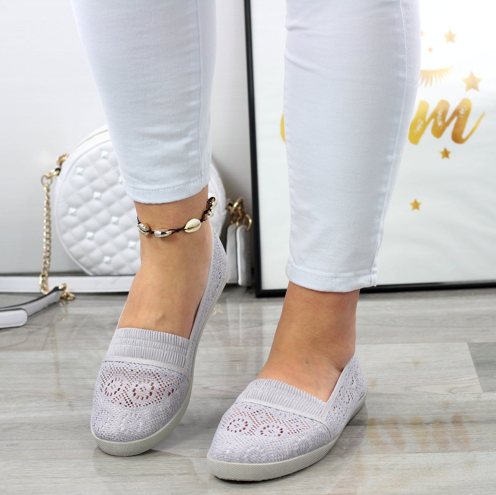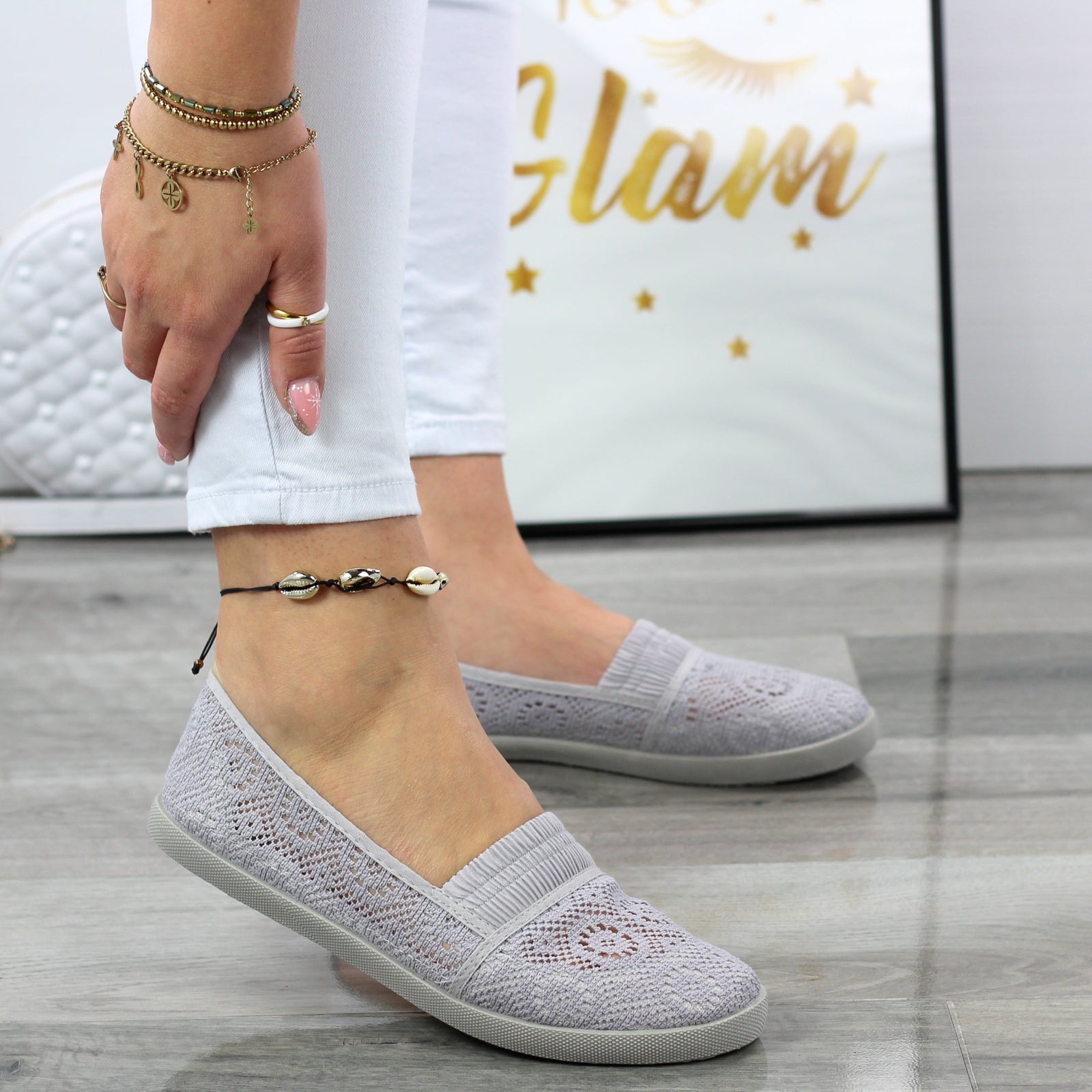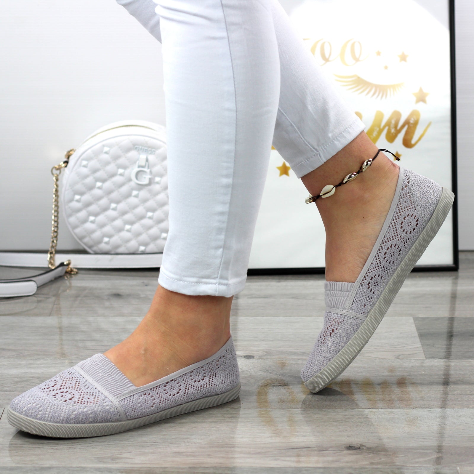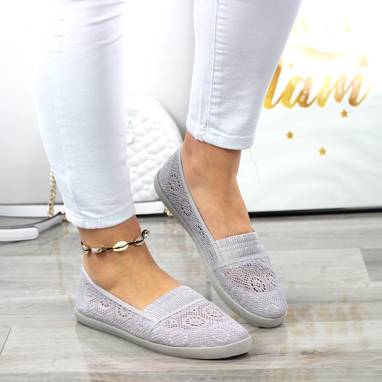 Szare Wygodne Koronkowe Trampki Tenisówki Gumka