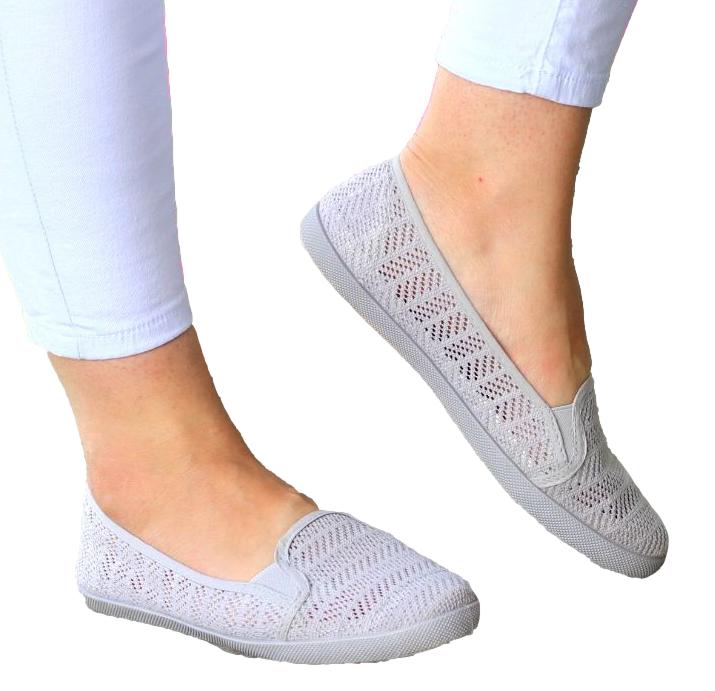 Szare Wygodne Koronkowe Trampki Tenisówki Gumki