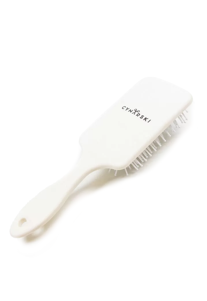 Szczotka do włosów CYNARSKI jest zakończona małymi, okrągłymi kuleczkami – dzięki temu zapobiega nadmiernemu wyrywaniu włosów podczas rozczesywania. Jej kształt i odpowiedni rozstaw “zęba” sprawiają, że rozczesywanie włosów jest szybsze, łatwiejsze, a także mniej bolesne.