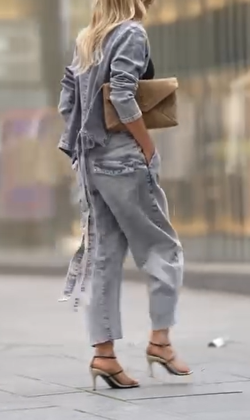 Górną część stanowi kurtka jeansowa o skróconym kroju ze stójką, tworząca wyrazisty, schludny look. Wykonana z wytrzymałego denimu, oferuje elegancką, trwałą fakturę, która zachowuje swój kształt. Ta kurtka jest uniwersalna i nadaje się na wiele okazji. Na nieformalne okazje, załóż ją z prostym, czarnym topem, jak na zdjęciu, aby uzyskać swobodny, a zarazem stylowy wygląd. Świetnie sprawdzi się również jako okrycie wierzchnie wiosną i jesienią, zapewniając ciepło i dodając stylizacji nutę retro i modnego charakteru.