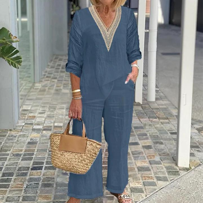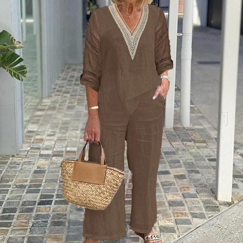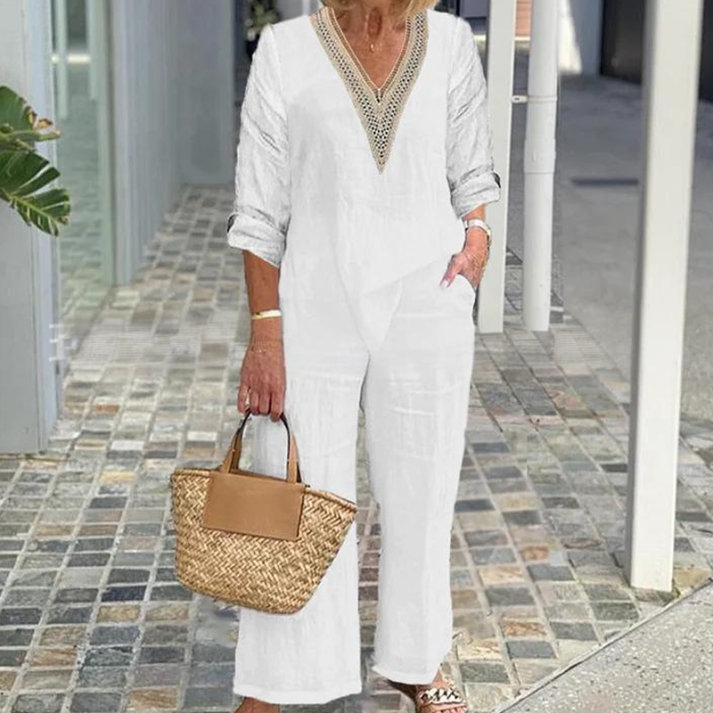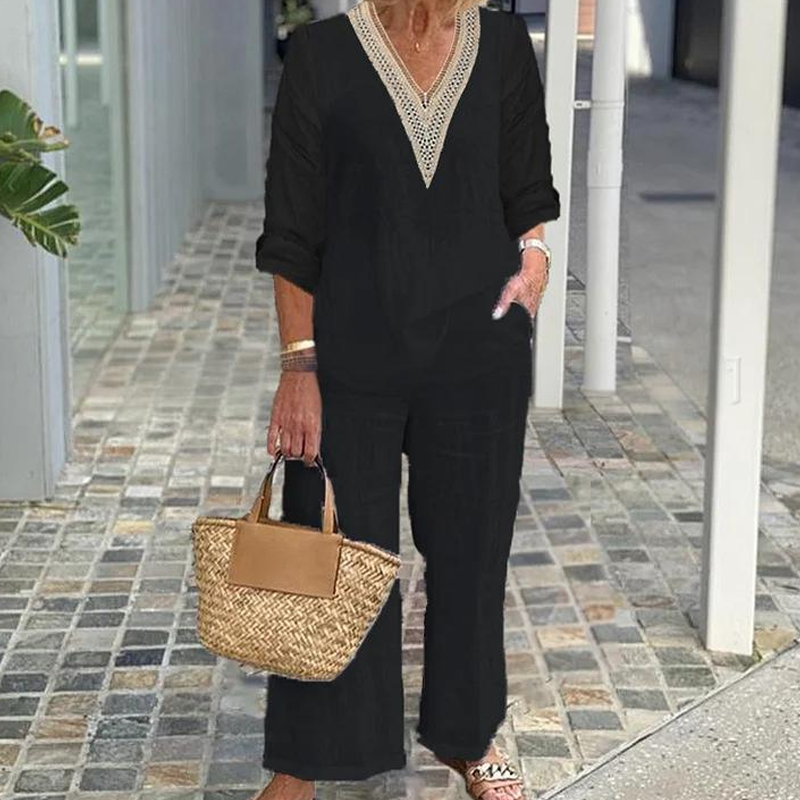 【S-3XL】✨Damski top z dekoltem w serek i szerokimi nogawkami