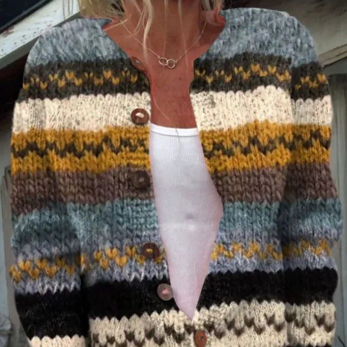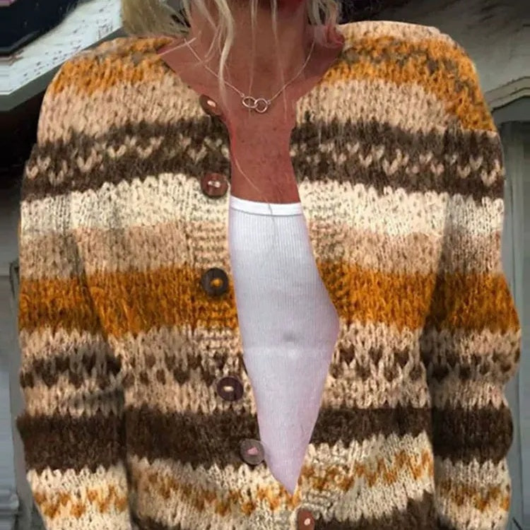 W skład zestawu wchodzą: 1 * Damski kardigan z nadrukiem i guzikami